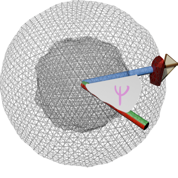Let us consider a boat sailing on the surface of the Earth, which we can model as a sphere. If we pick some starting point on the globe, we can describe the boat’s position using two angles: latitude \(\textcolor{orange}{\phi}\) and longitude \(\textcolor{purple}{\psi}\) and additionally we can also consider the boat’s orientation, which can be described by a third angle \(\textcolor{teal}{\alpha}\).